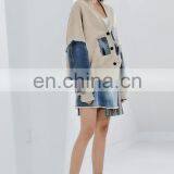 TWOTWINSTYLE Jackets For Women V Neck Long Sleeve Hit Color Pockets Loose Oversized Apricot Patchwork