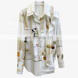TWOTWINSTYLE Printed Shirt For Women Lapel Long Sleeve Hit Color Asymmetrical 2020