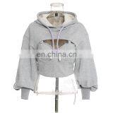 TWOTWINSTYLE Sweatshirt For Women Hooded Collar Long Sleeve Hollow Out Casual Short Sexy
