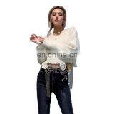 TWOTWINSTYLE Knitted Pullover For Women V Neck Flare Sleeve Side Slit Slim Patchwork Chain