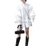 TWOTWINSTYLE Dress Shirt For Women Sailor Collar Flare Sleeve Front Split Loose Blouse Casual Fashion