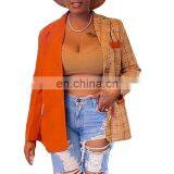 TWOTWINSTYLE Women Blazer Jacket Notched Long Sleeve Patchwork Hit Color Plaid Casual