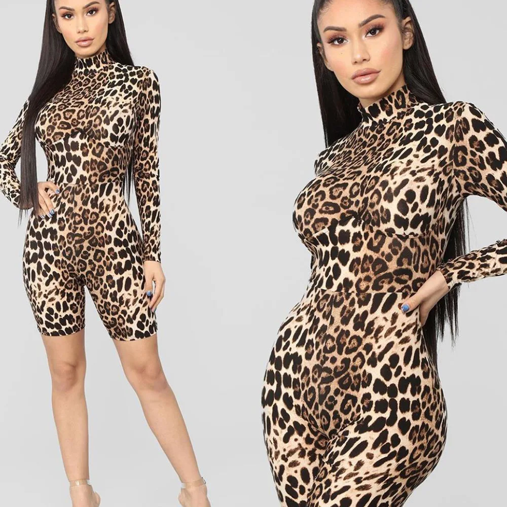 Home > Apparel & Accessories > Outer Wear > Women's Outer Wear > Women Long Sleeves Animal Print Mock Neck Sexy Bodysuit