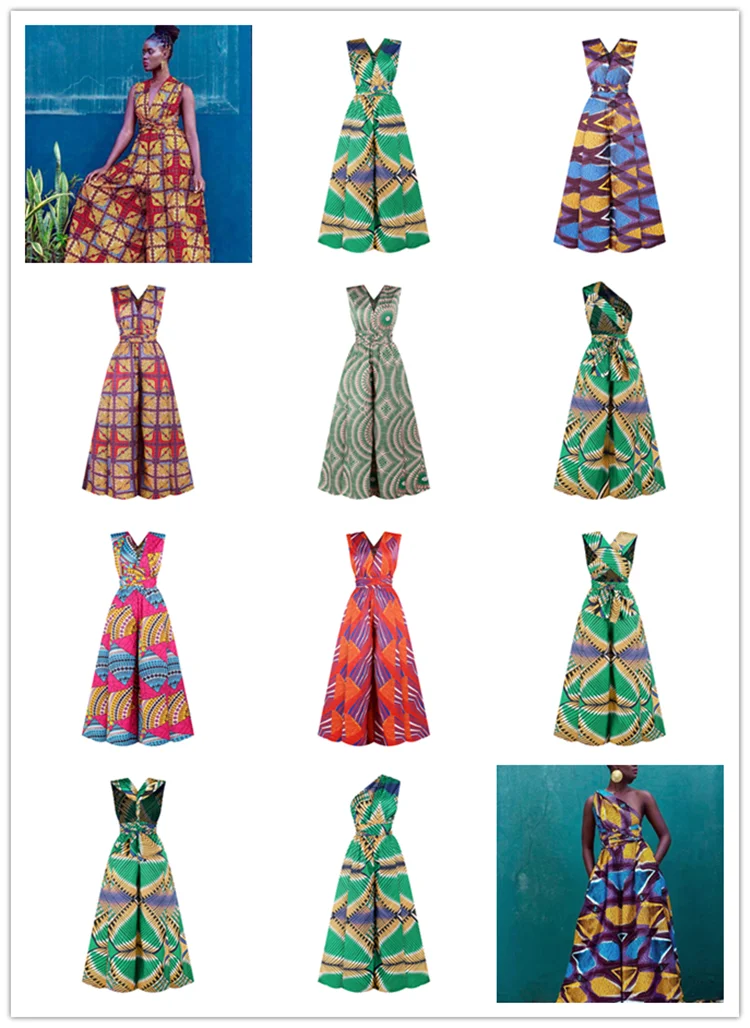 Home > Apparel & Accessories > Outer Wear > Women's Outer Wear > Wholesale Sexy Ladies V-neck Wide Leg Opening Women's African Print Floral Jumpsuits Culottes