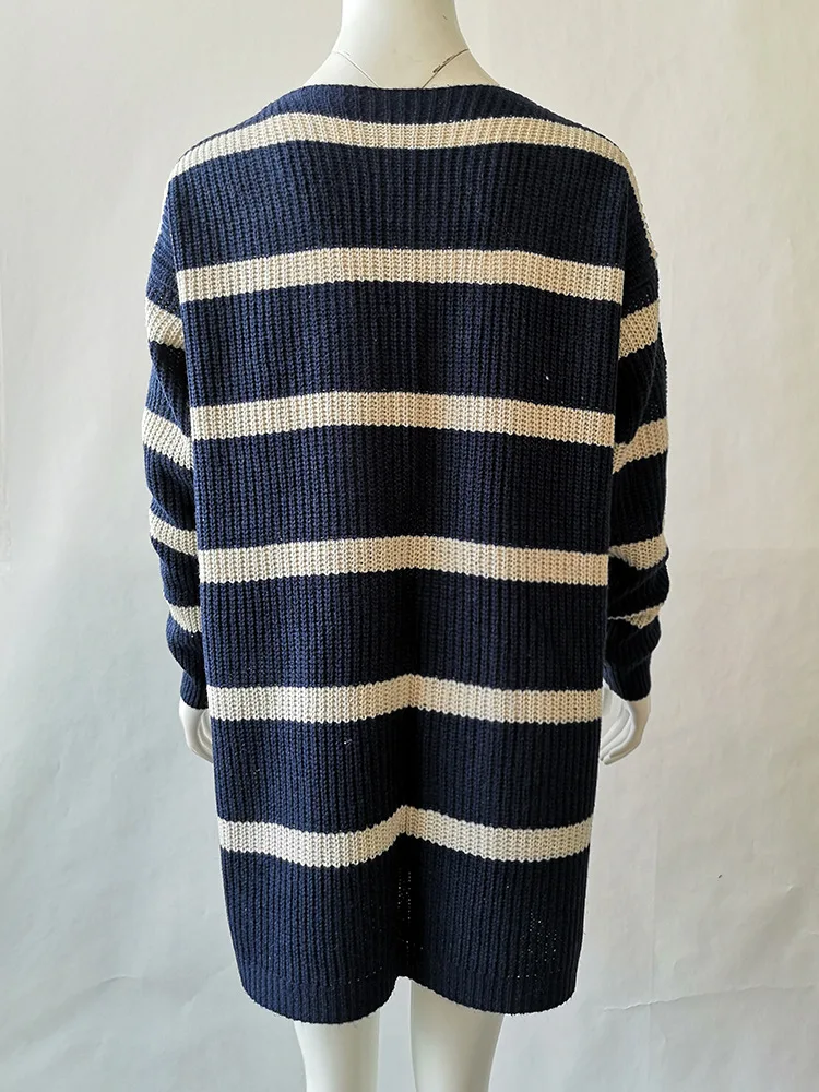 Home > Apparel & Accessories > Outer Wear > Women's Outer Wear > Women Long Knitted Vertical Stripes Cardigan Sweater