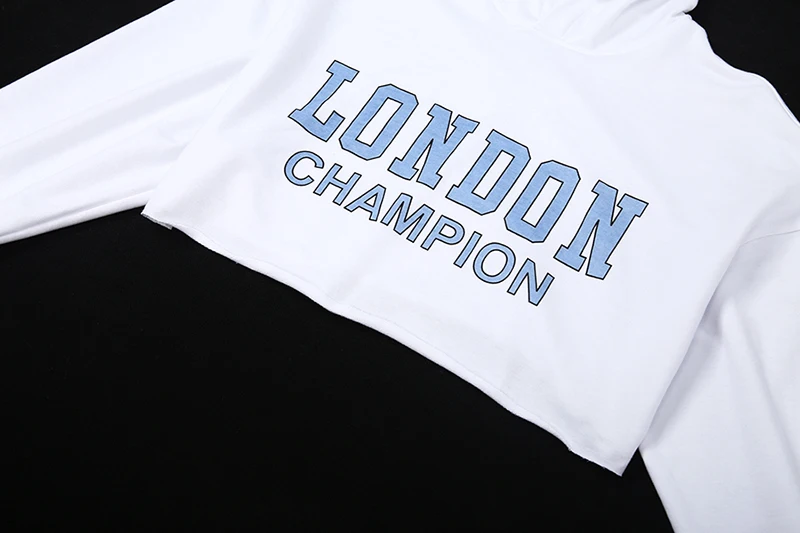 Home > Apparel & Accessories > Outer Wear > Women's Outer Wear > Women's Letter Printing Long Sleeve Hooded OEM Wholesale Autumn Explosion Style Slim Short Navel Sweatshirt Crop Hoodies