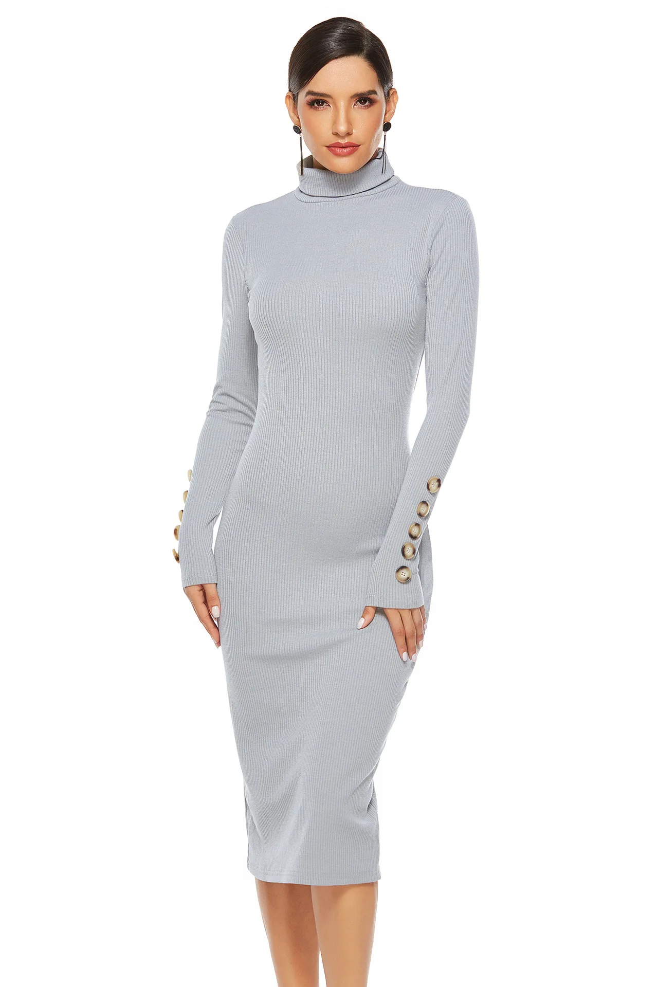Home > Apparel & Accessories > Outer Wear > Women's Outer Wear > Women's Stretch Slim Turtleneck Knit Dress European and American Fashion Bottoming Sweater Long Skirt