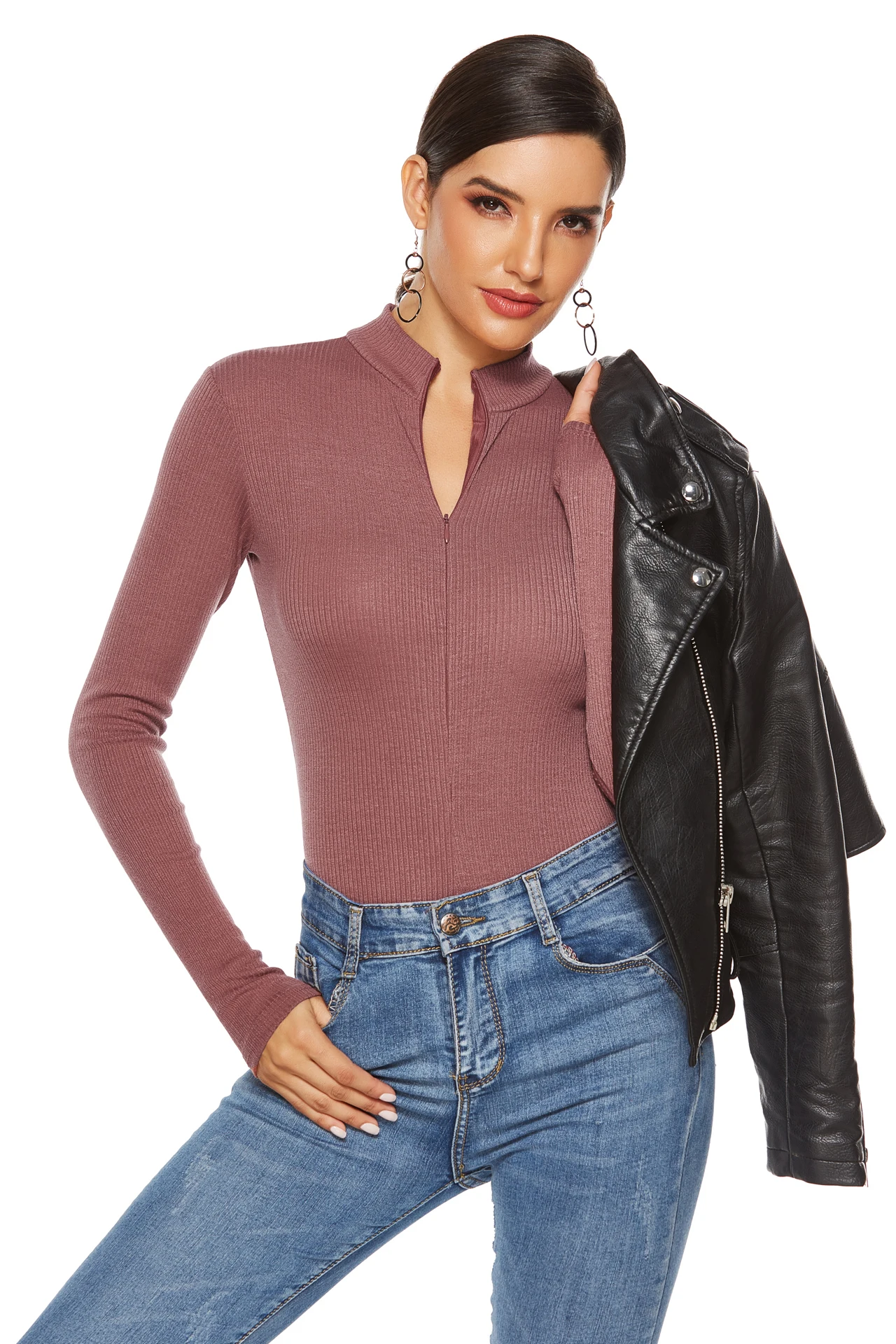 Wholesale Hot Selling Women's Long Sleeve Sexy Bottom Sweater Zip Stand Collar Slim Knit Jumpsuit Bottoming Sweater