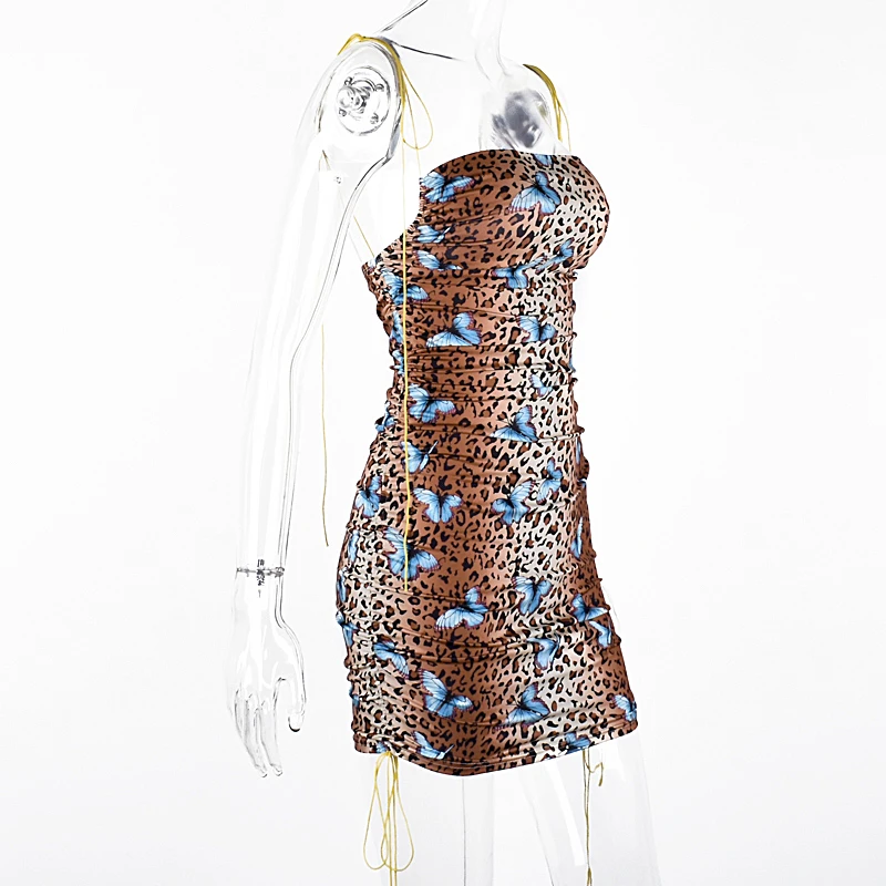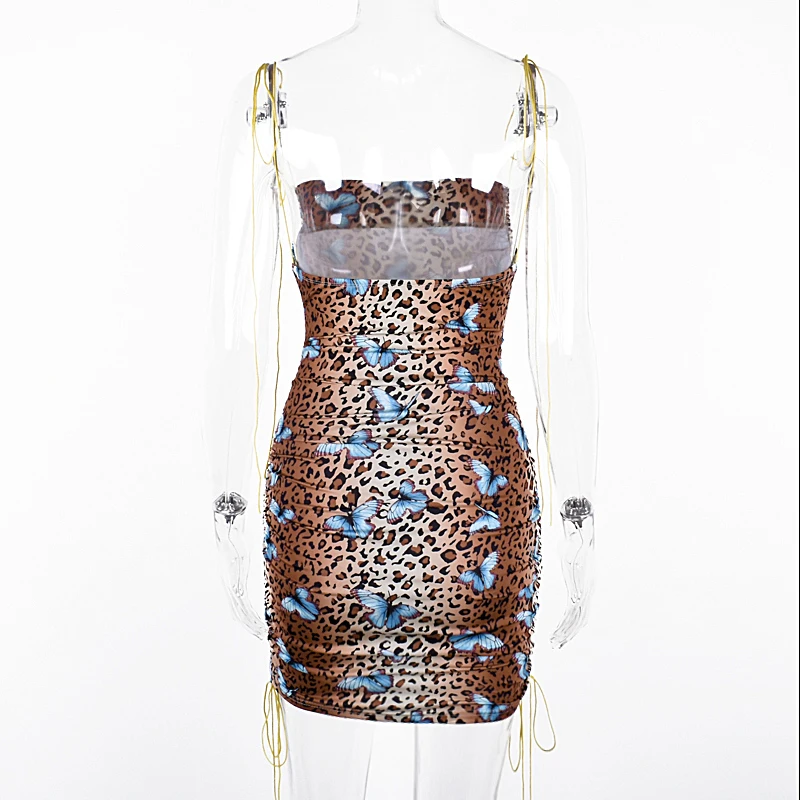 Home > Apparel & Accessories > Outer Wear > Women's Outer Wear > Fashion Hot Sexy Women 2020 Summer Print Leopard Halter Dress Sleeveless Backless Butterfly Bodycon Mini Dress