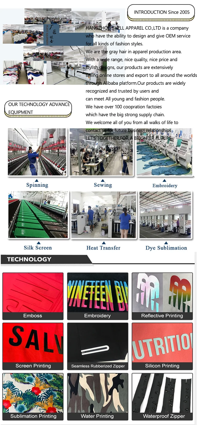HANGZHOU SHELL APPAREL CO.,LTD is a company who have the ability to design and give OEM service for all kinds of fashion styles.