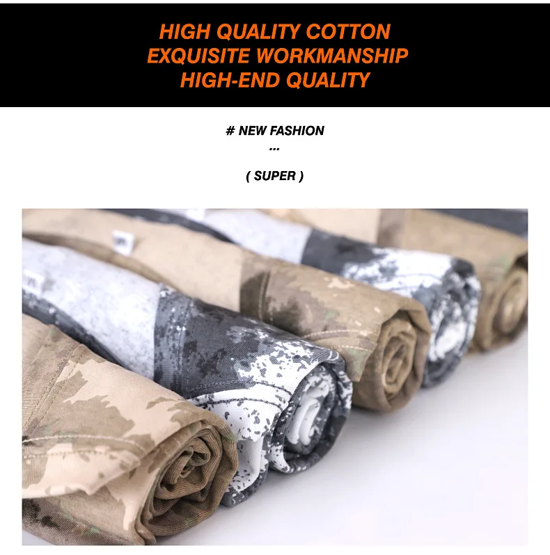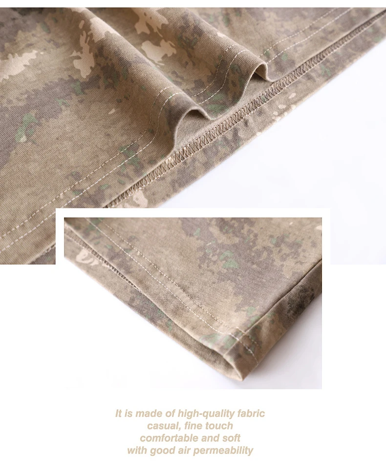 200g Cotton Personality Camouflage Short-sleeved Loose Shoulder 2020 Spring and Summer New Printing Men's T-shirt