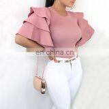 Wholesales Best Sellers Women Lace Blouse Top Ladies Fashion Short Sleeve Solid Lace Tops Women Clothing