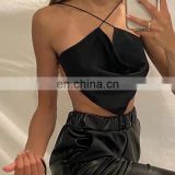 LAITE T2021 100% Cotton Women Backless Sling Crop Tops Ladies Solid Color Sexy Crop Tank Tops Women Tank Tops