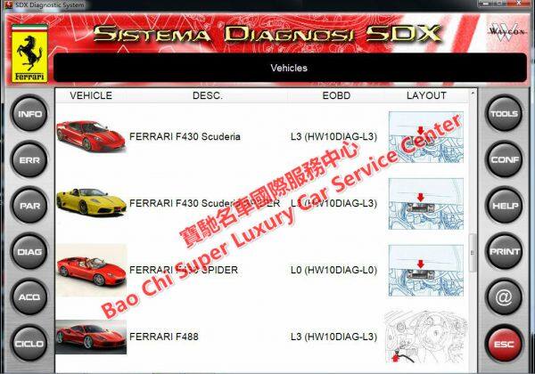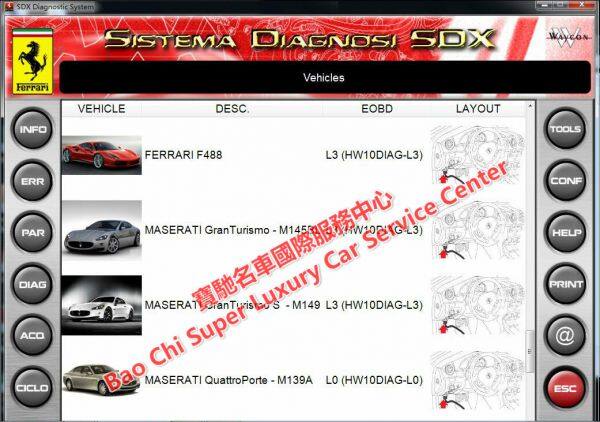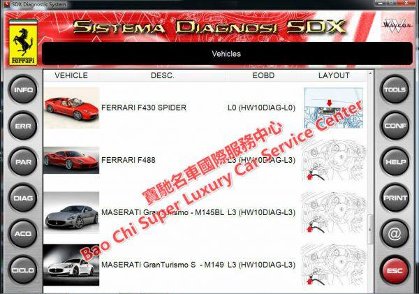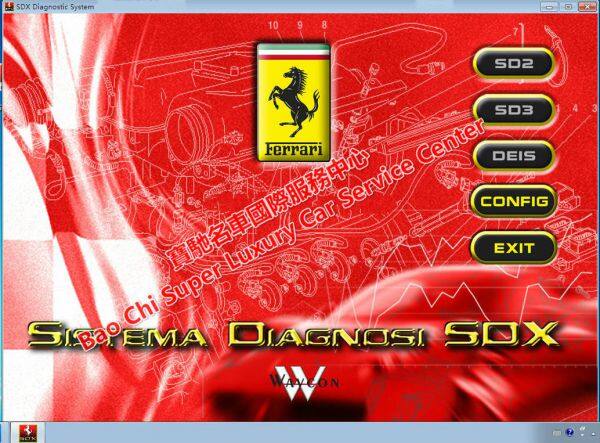 The SDX Diagnosis System is a tool bringing together all Four of the diagnostic systems produced by Ferrari Maserati S.p.A. (SD1+SD2+SD3+DEIS) in a single instrument for the electronic diagnosis of vehicles the Ferrari.