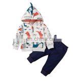 Fall Winter Boy Outfit Toddler Baby Cartoon Dinosaur Print Clothing Set Long Sleeve Hooded Tops + Pants 2pcs Set