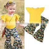 Fly Sleeve Top Yellow T-shirt Sunflower Loose Flared Pants Summer Floral Casual Costume Toddler Children Baby Girl Clothes Set
