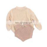 2020 Fall Winter Newborn Baby Girl Knit Sweater + Knitted Short Sweatersuit Solid Color Kids Cardigan Boys Knitted Jumpsuit
