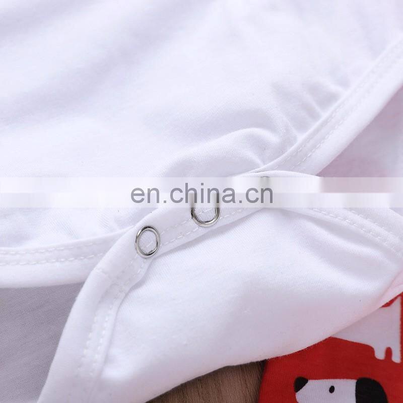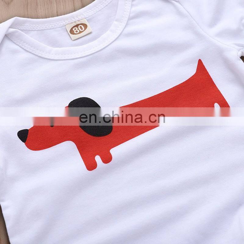 2019 New Summer Outfits Dog Full Print White Romper & Orange Pants 2PCS Set