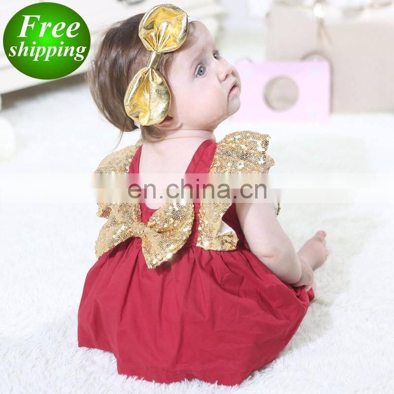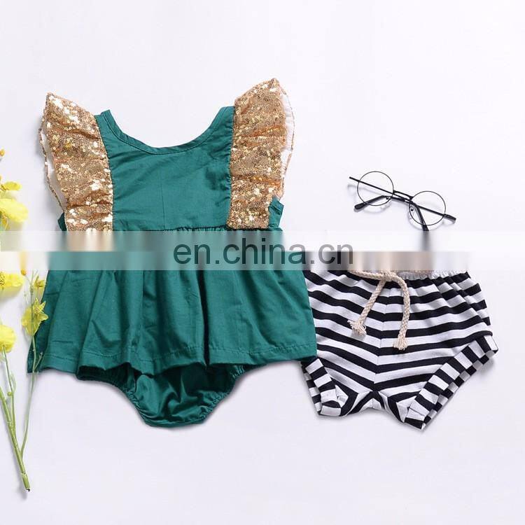 Ins 2019 SUMMER Fly Sleeved Sequins Baby Bodysuits Kids Backless Cotton Rompers Jumpsuits Red & Green
