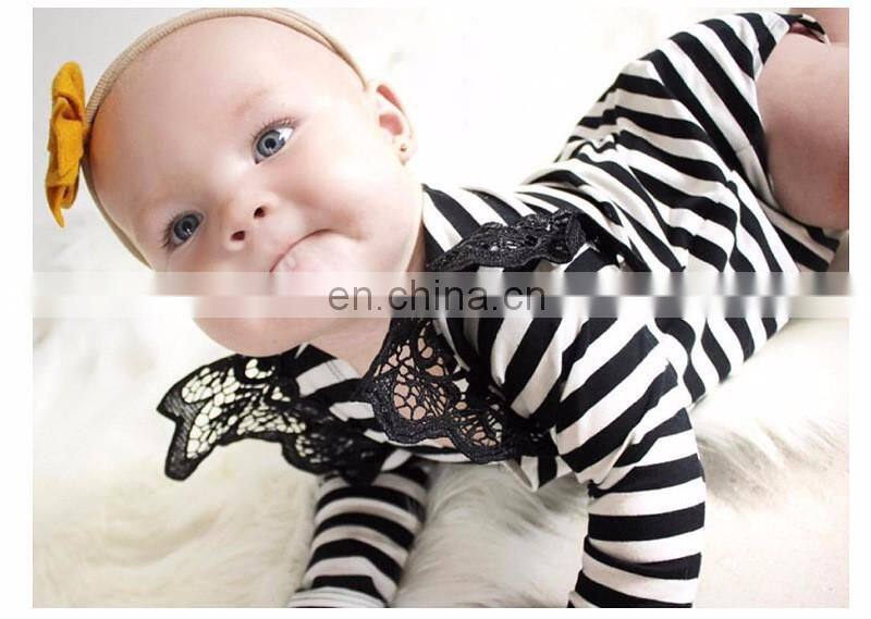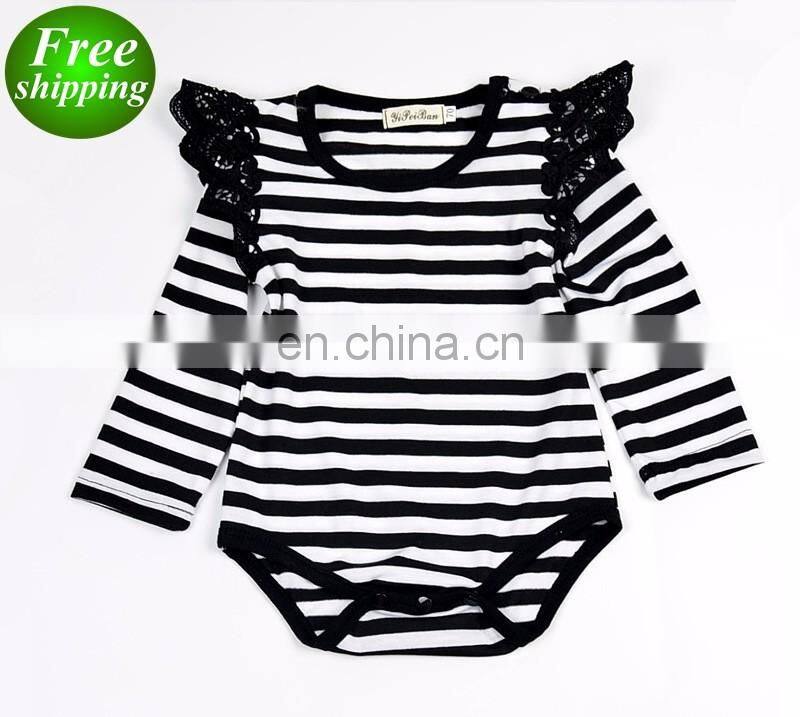 Home > Products > Baby Clothing-RTS/OEM Item > 2019 New Black White Striped Rompers Infant Toddler Flutter Sleeve Romper Baby Unique Bodysuits