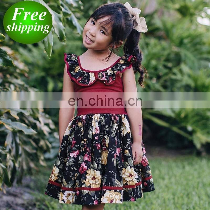 Home > Products > Baby Clothing-RTS/OEM Item > 2019 Summer Girls Red Floral Dress Summer Girl Sleeveless Bandage Dress Free Ship