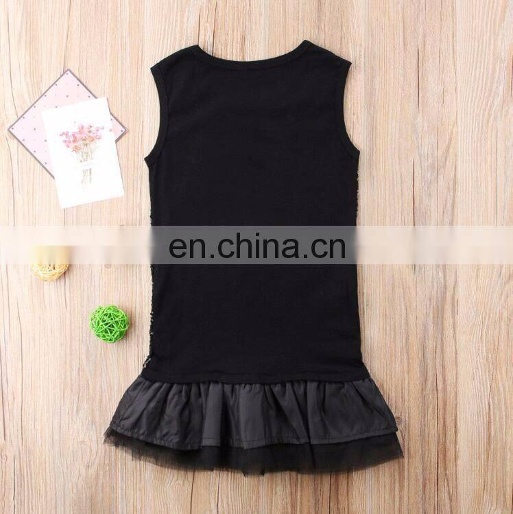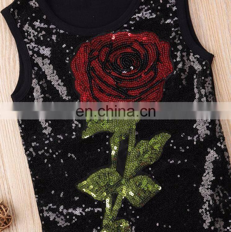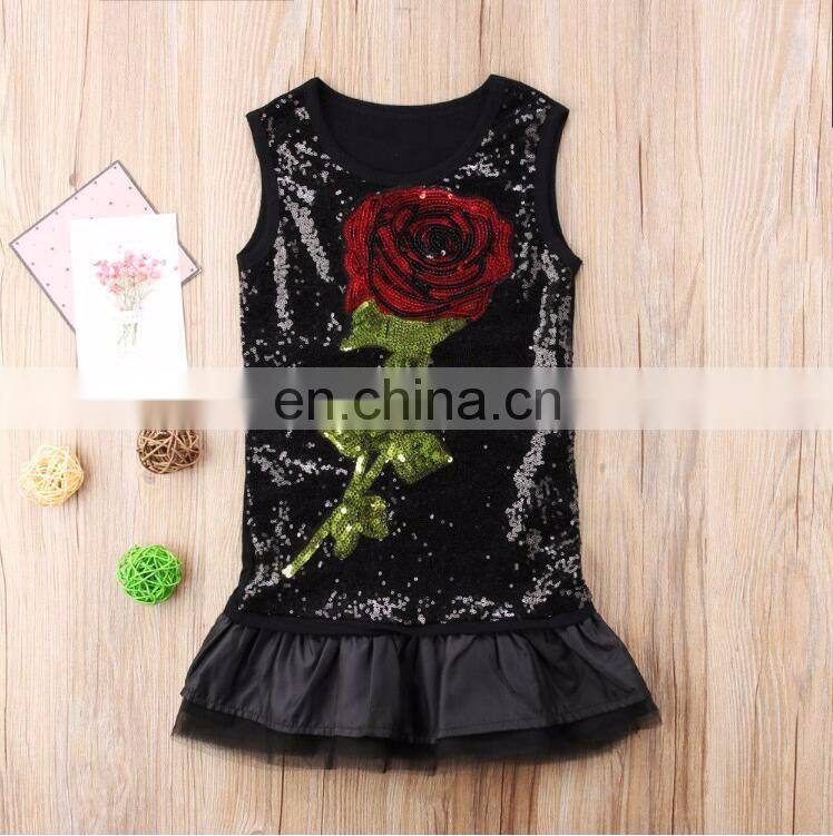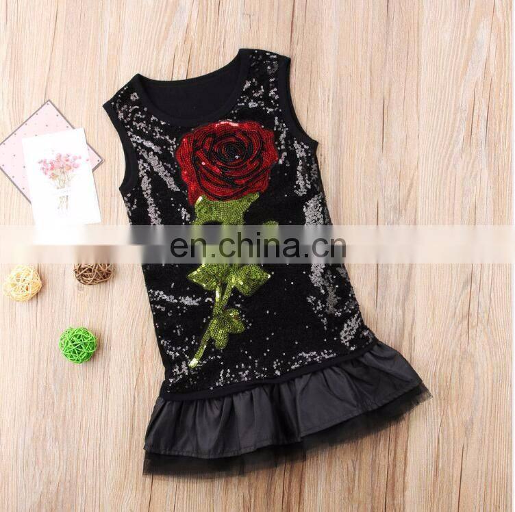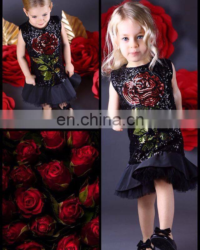 Home > Products > Baby Clothing-RTS/OEM Item > 2019 New Summer Boutique Toddler Girls Kids Rose Flower Black Sequins Dress Sleeveless Casual Evening Party Tutu Tulles Dress