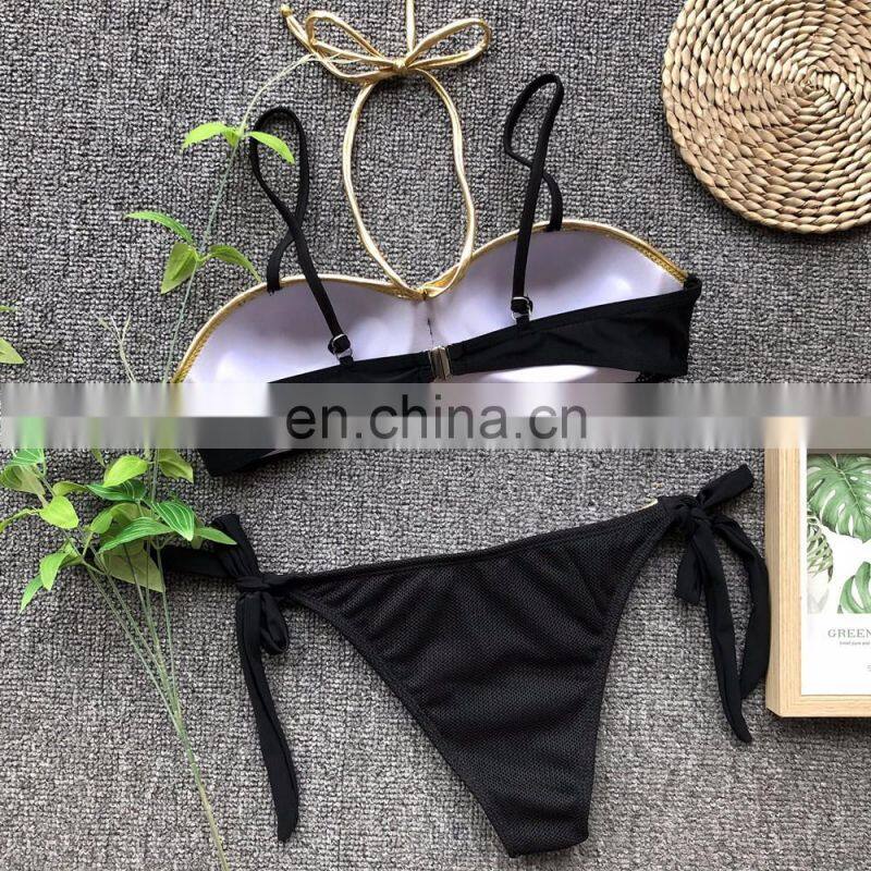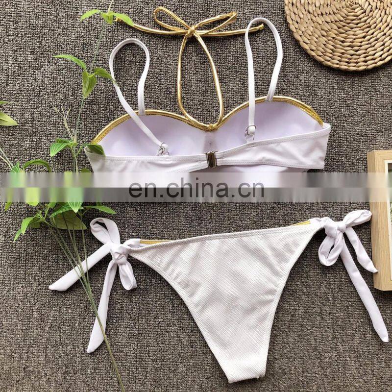 2019 SUMMER Ladies Ties Halter Padded Push Up Bikini Solid Thong Bathing 2 Pieces Swimsuit Women