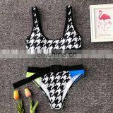 New Belt Buckle High Waist Bikini Set Sexy Houndstooth Patchwork Print Swimsuit Swimwear Women Beach Bathing Suit Bikini Biquini