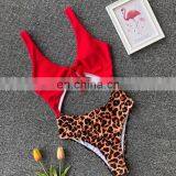 2019 Leopard Tied Sexy One Piece Swimsuit Women Push Up Swimwear Summer BeachWear Solid Bathing Suit Monokini Bodysuit