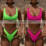 Brazilian Neon Green Bikini Thong 2019 Summer Bathing Suit Bandeau Strap Push up Swimsuit Sexy Swimwear Women Two-piece Suit New