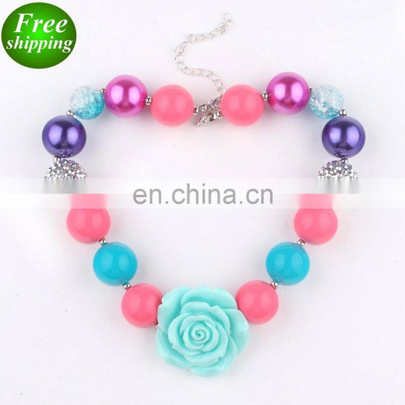 High Quality Dressed up Chunky Necklace Beadings Sweet Flower Plastic Baby Girl Necklace FREE SHIP