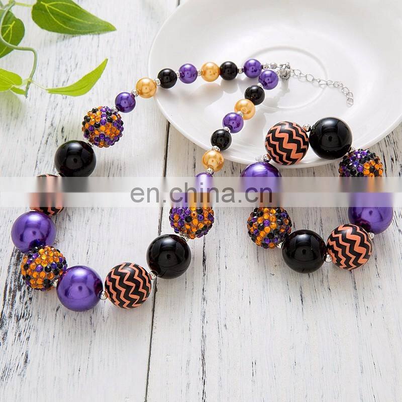 Kids Necklace + Bracelet Set Halloween Girl Chunky Bubblegum Bead Jewelry Accessories 2pcs Set
