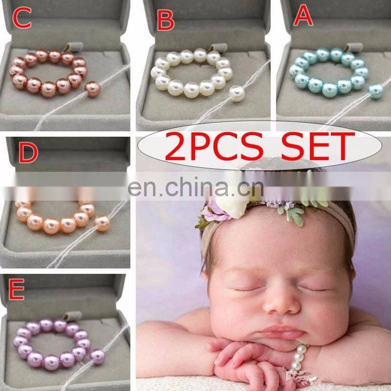 Newborn Set Barelet and Headband Baby Pearl Bubblegum Photo Prop