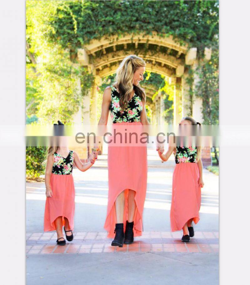 2019 Women Maix Dress Printing Stitching Mother Daughter Matching Dress (this Link for WOMAN)