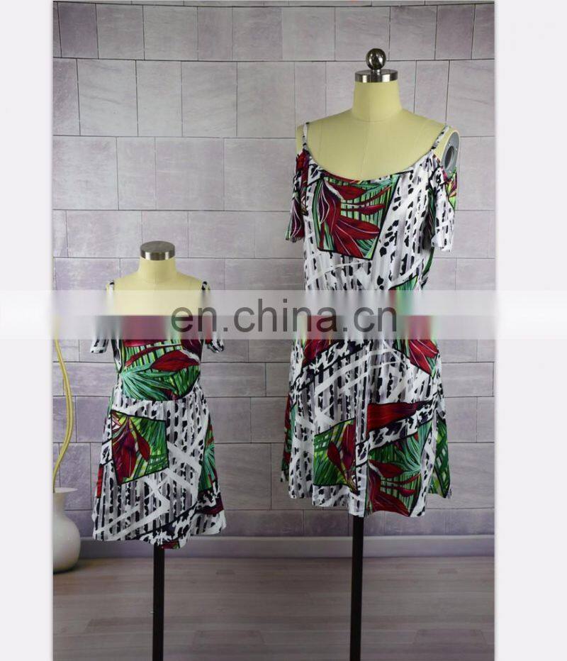 2019 SUMMER Mother and Daughter Clothes Summer Leakage Shoulder Tropical Rainforest Printed Dress (this Link for WOMAN)
