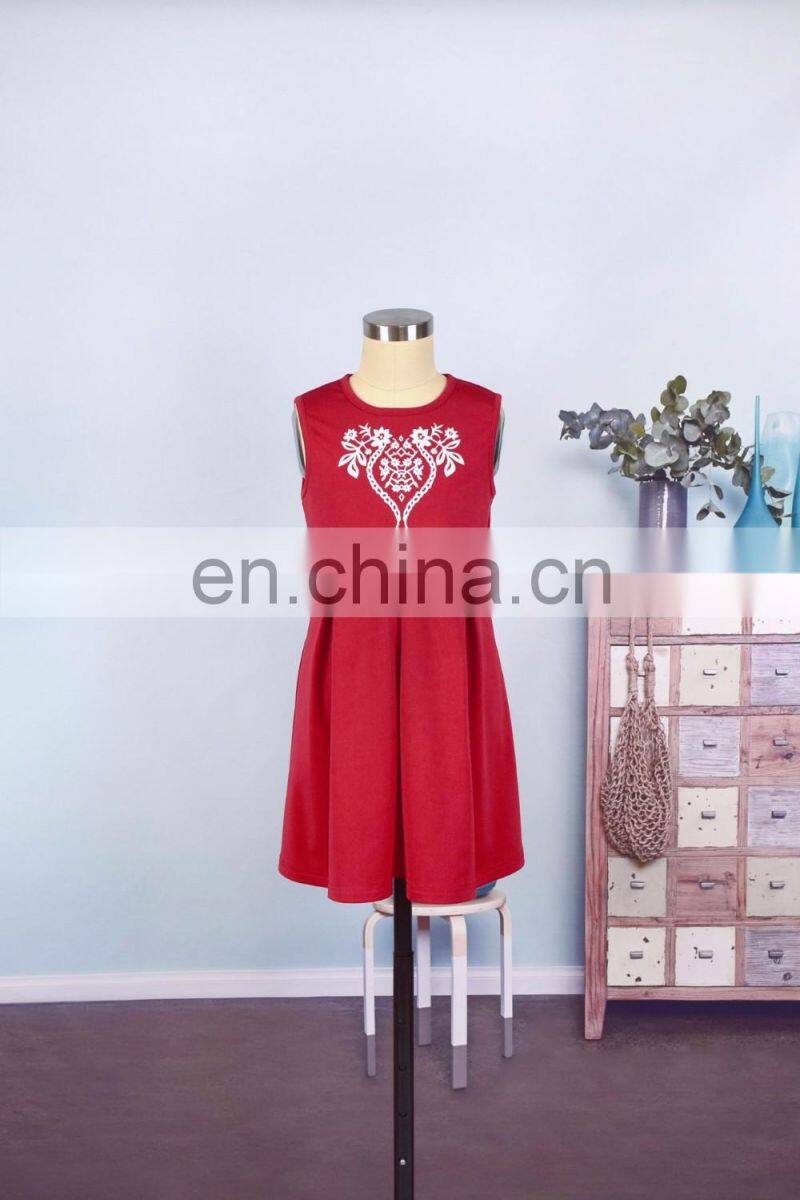 2019 Summer Women Girls Mommy and me Red Solid With Embroidery Flower Sleeveless Knee Length Work (this Link for WOMAN)