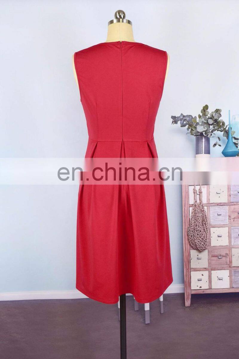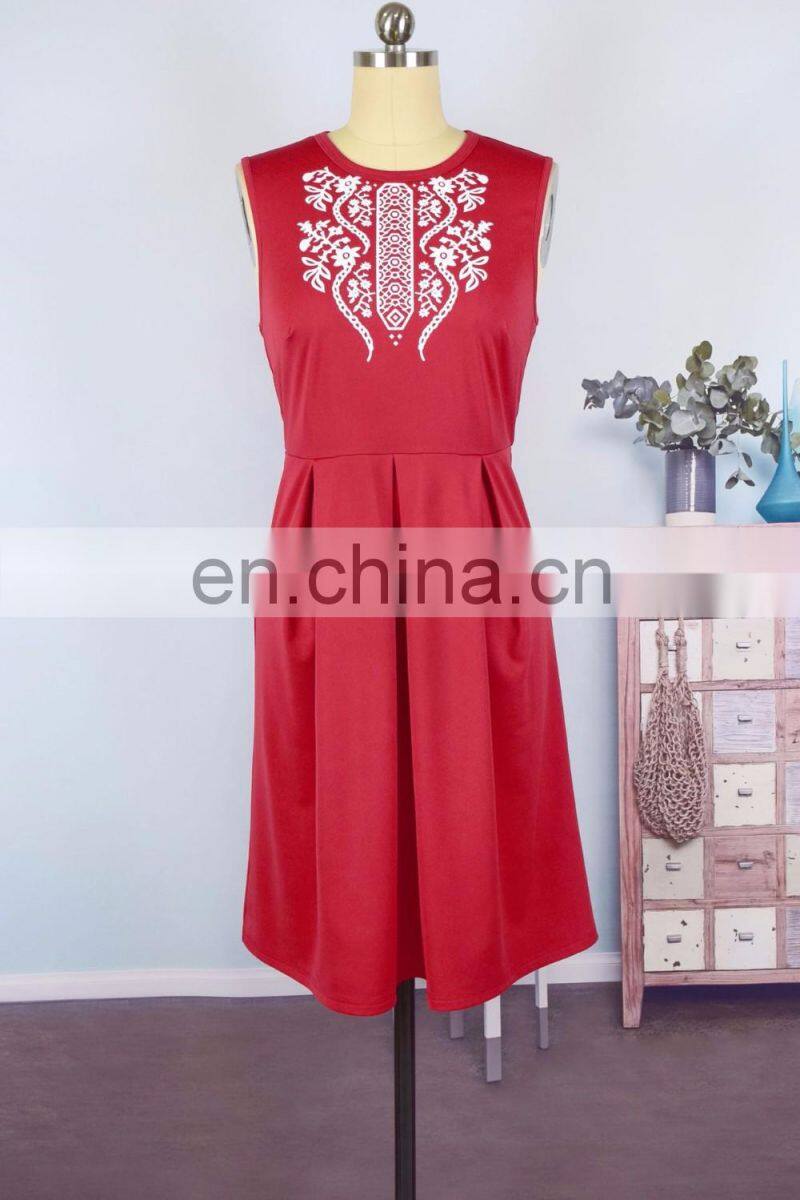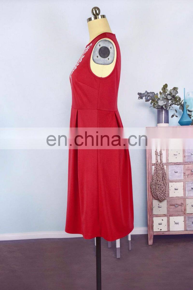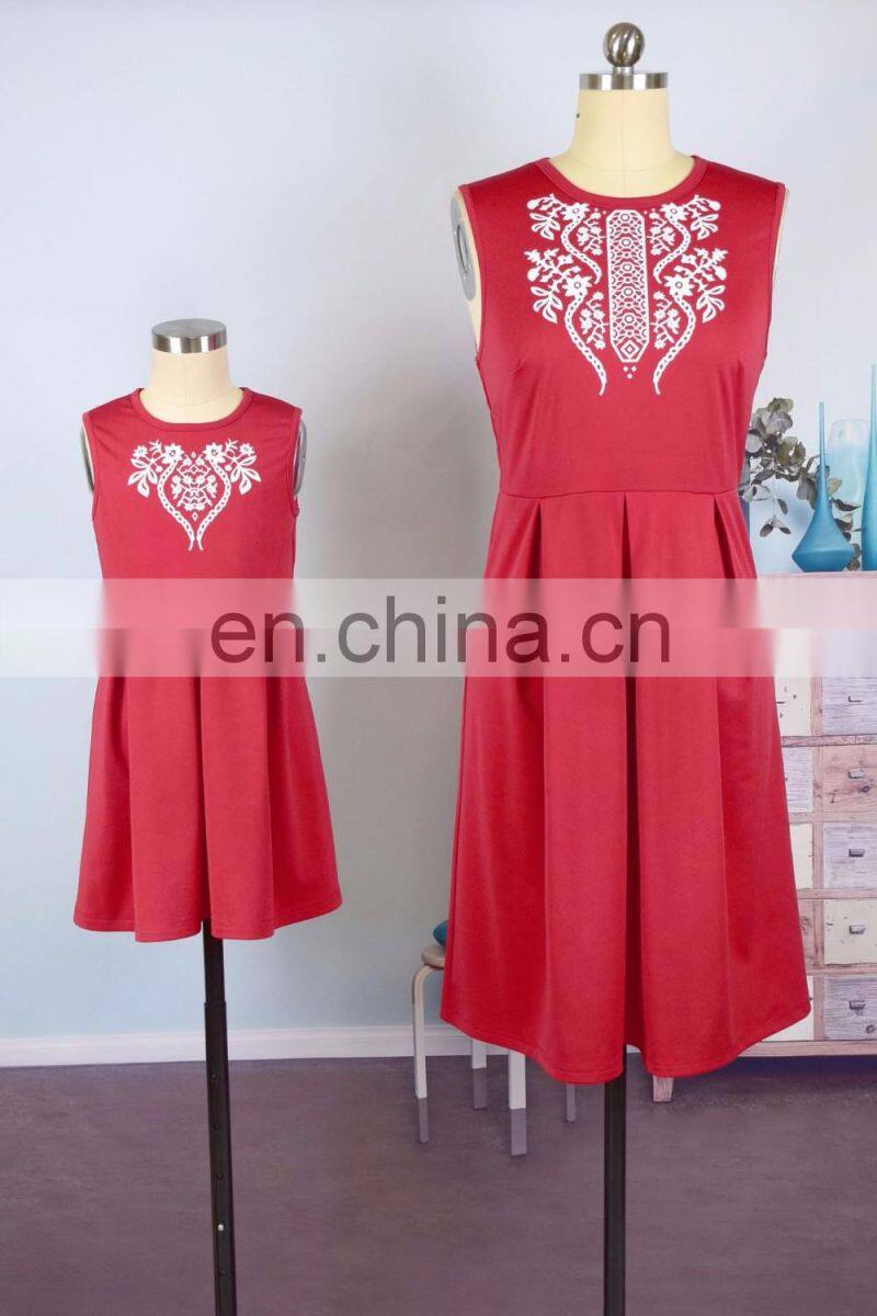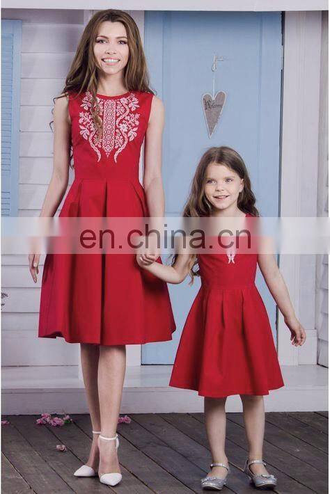 2019 Summer Women Girls Mommy and me Red Solid With Embroidery Flower Sleeveless Knee Length Work (this Link for Girls,1-8years)