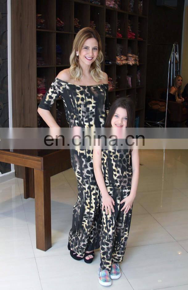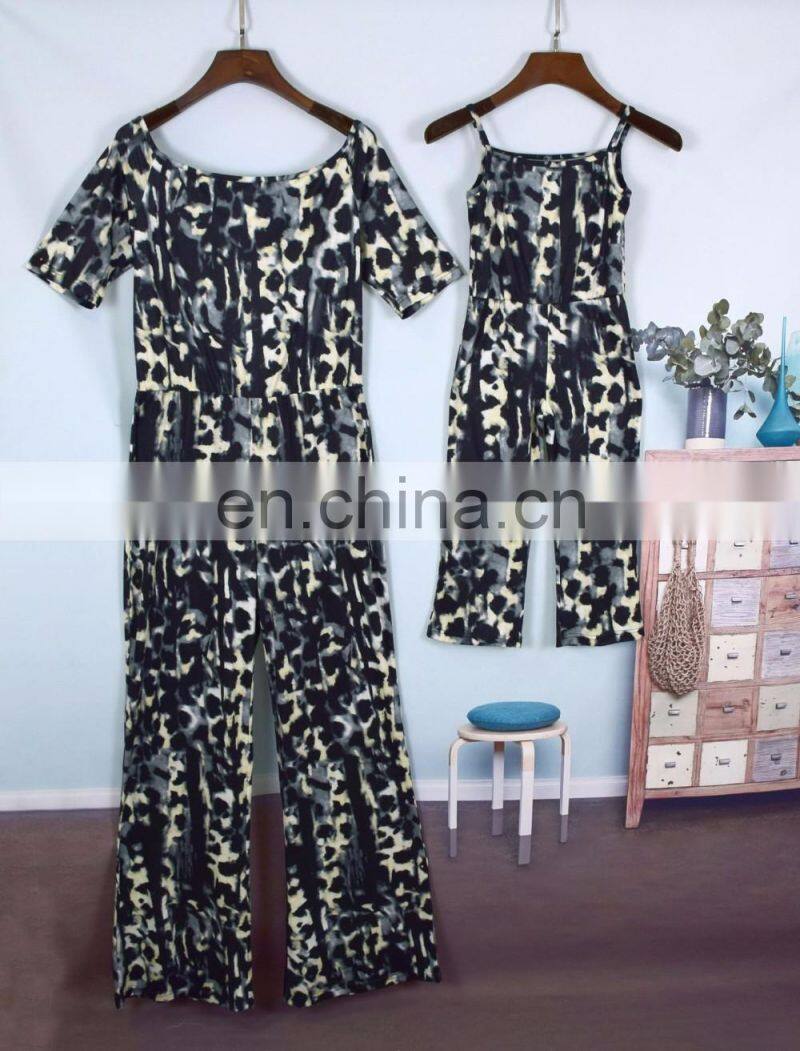 Leopard Parent-Child Outfit Fashion Leopard Grain Siamese Trousers Suits Short Sleeve Round Collar (this Link for WOMAN)