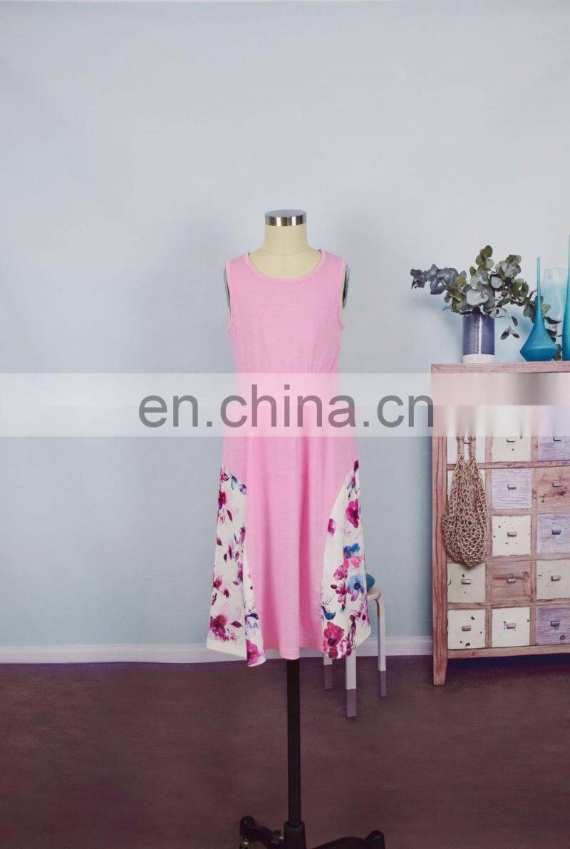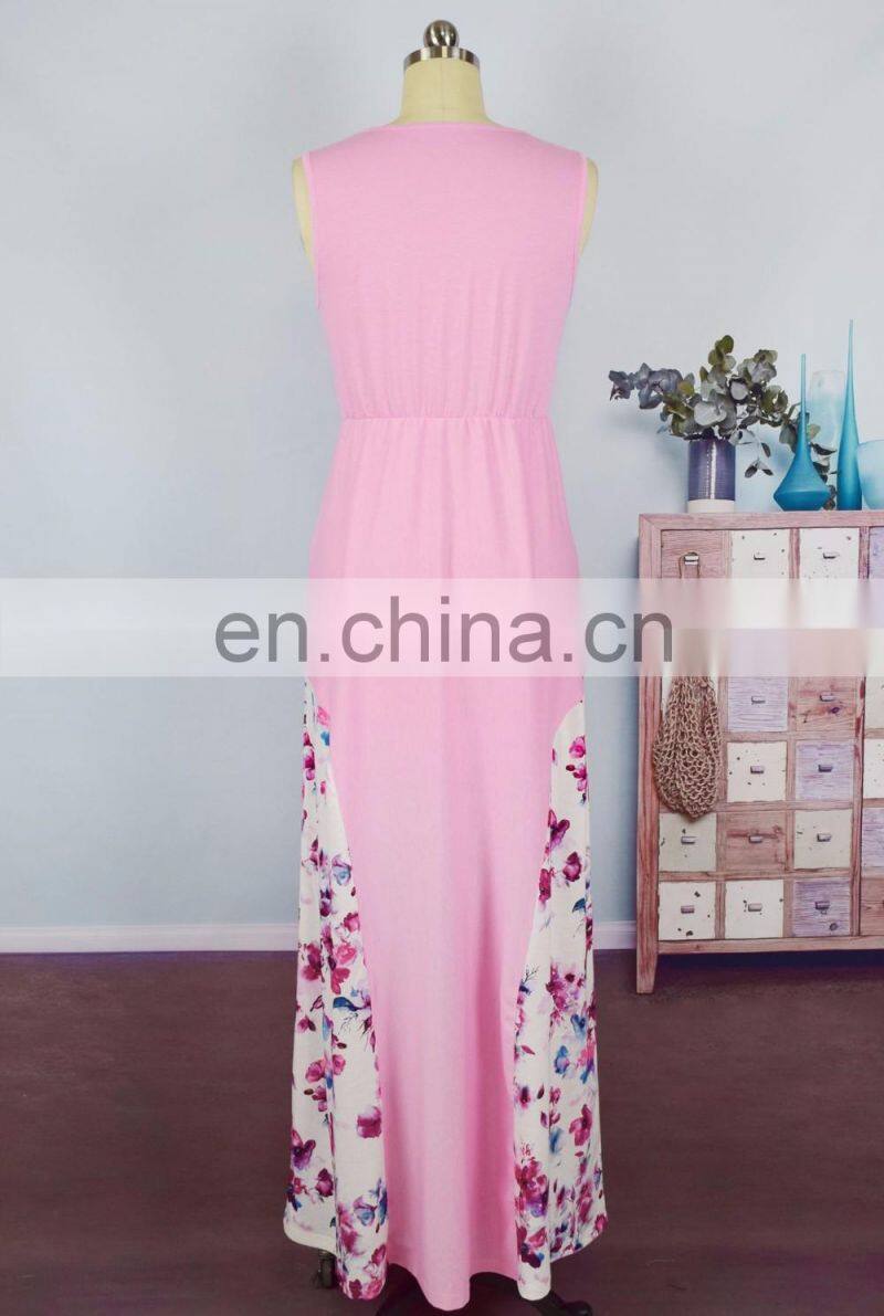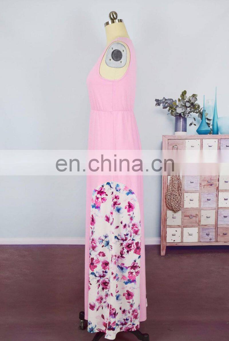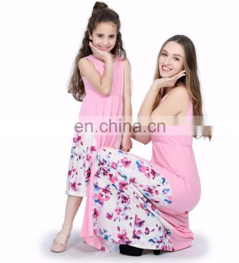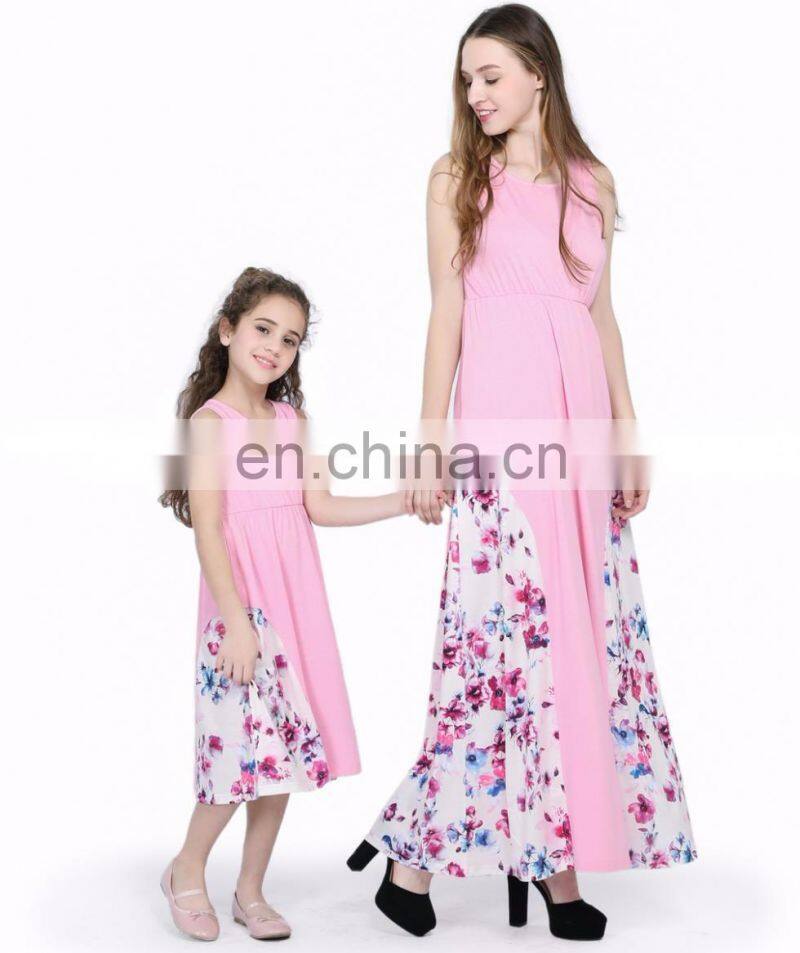 2019 New Women Pink Floral Long Summer Dress Mother Daughter Matching (this Link for WOMAN)