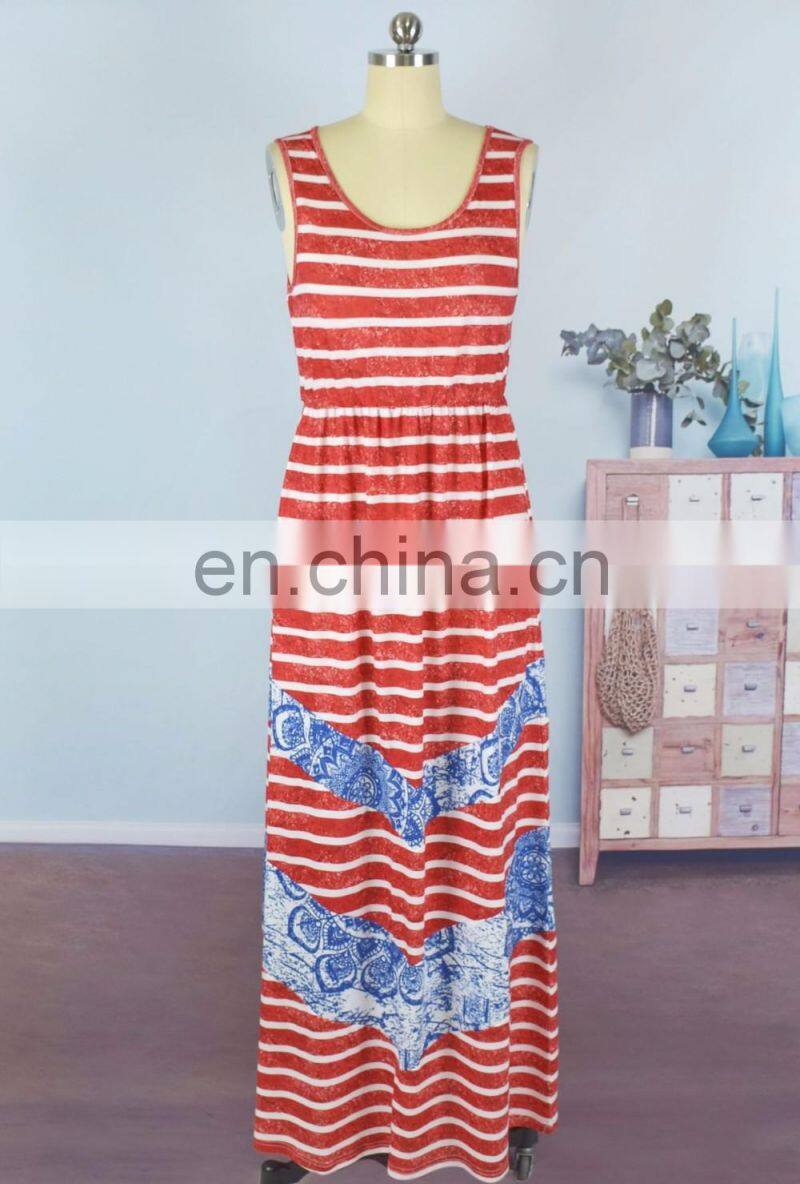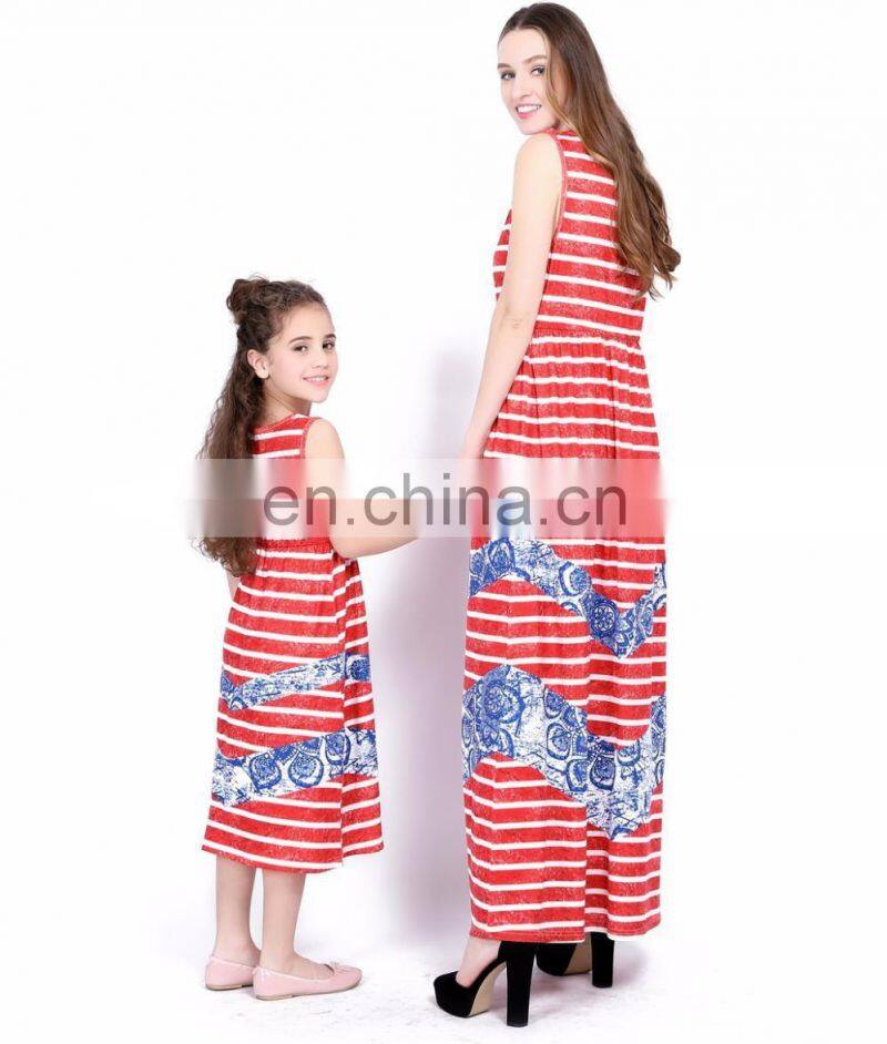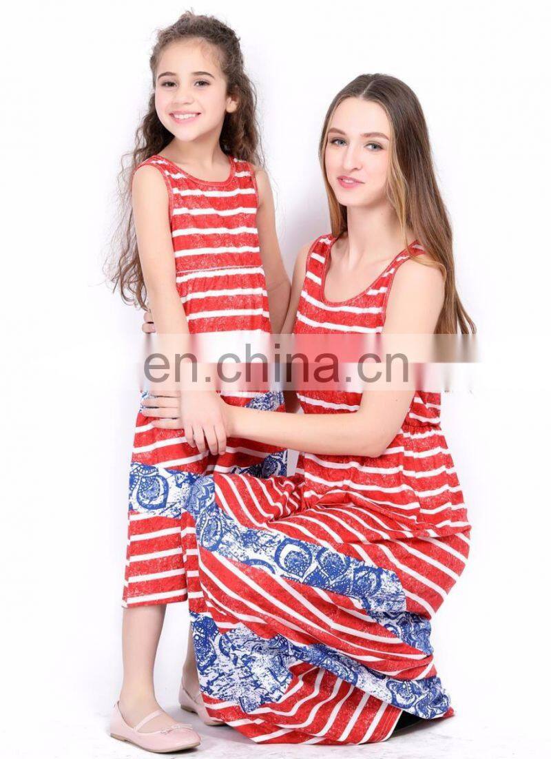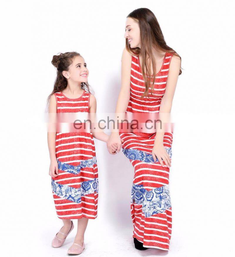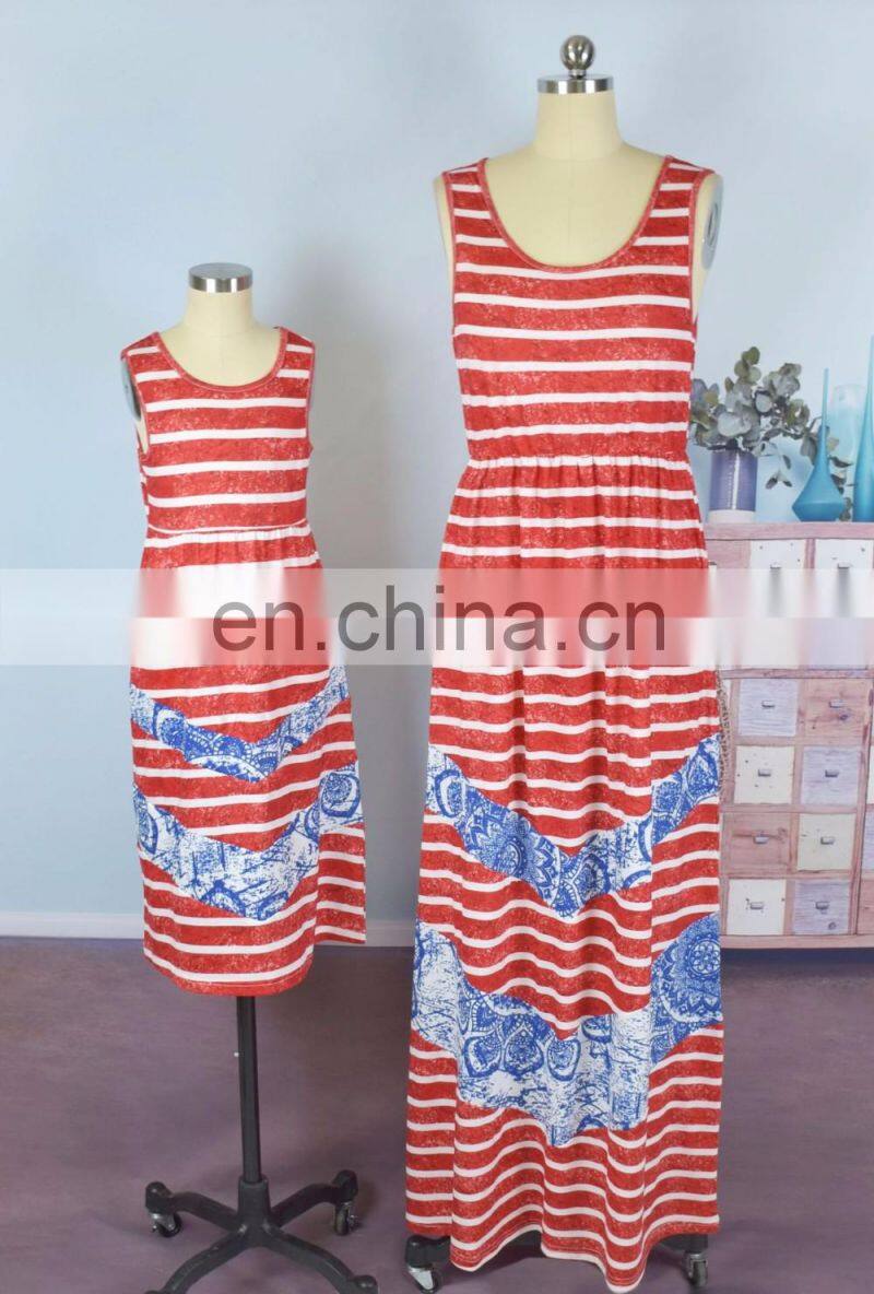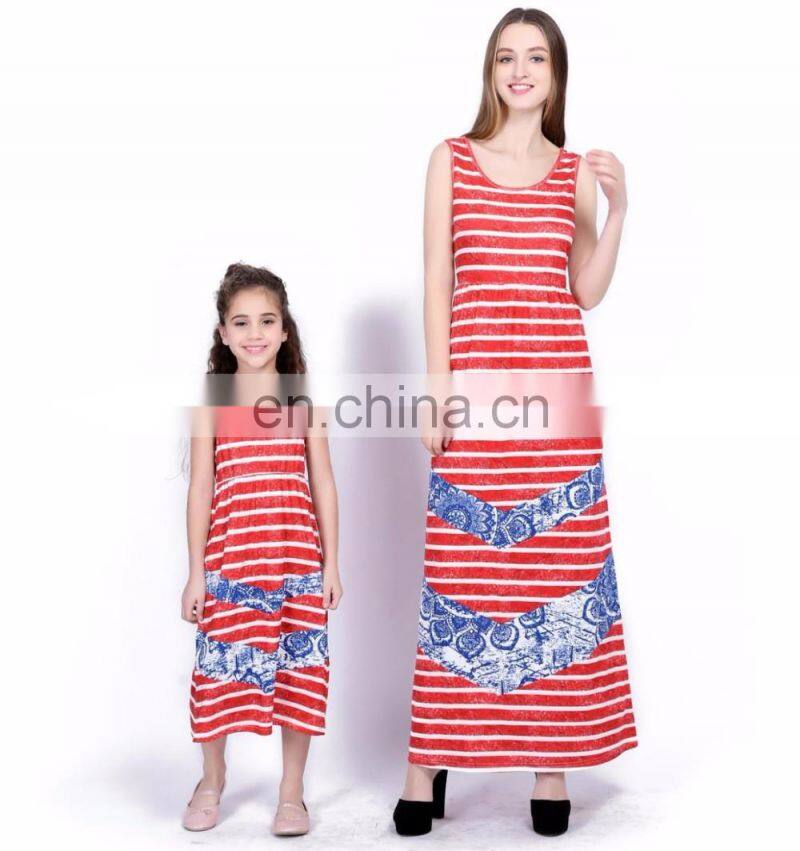 2019 New Women Pinstripe Stitching Long Summer Dress Mother Daughter Matching (this Link for WOMAN)