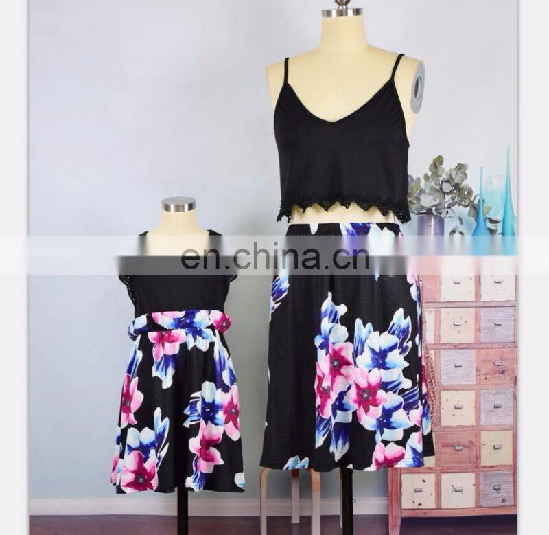 2019 New SUMMER Sleeveless Black Sling and Printed Pleated Skirt Mommy and me Dress (this Link for WOMAN)