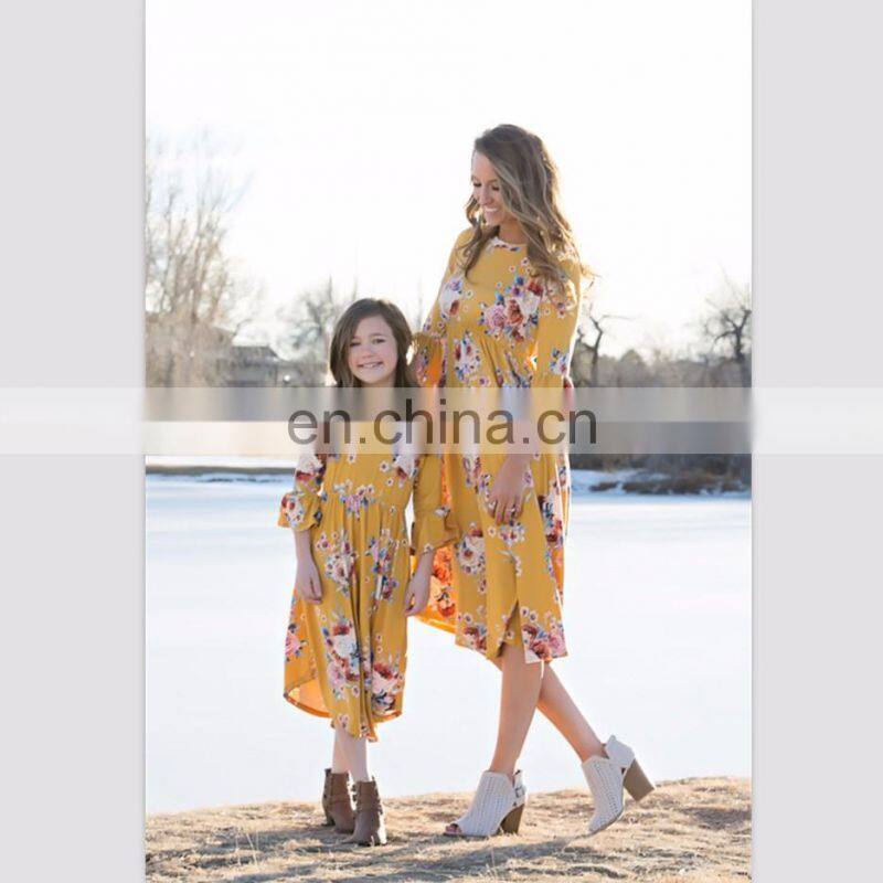 2019 New Fashion Floral Print Casual Mother and Daughter Matching Dress