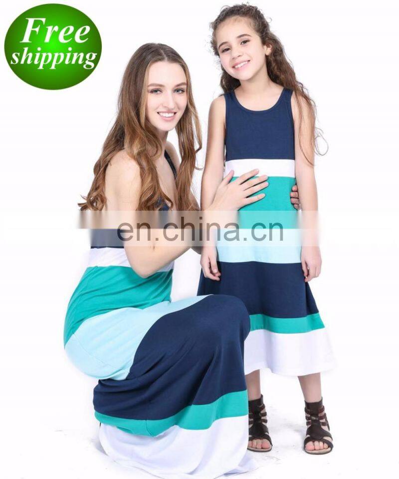 2019 New Style Mom And Girl Stripes Color Block Mother Daughter Matching Dress (this Link for KIDS)