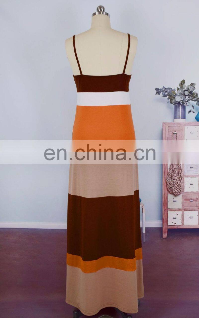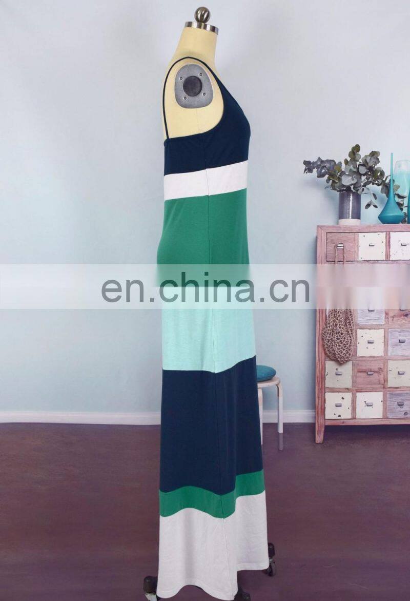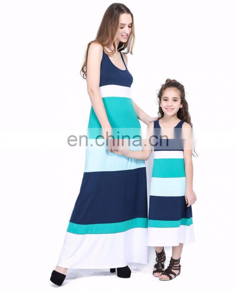 2019 Spring Summer Family Matching Clothing Mommy and Child Long Maxi Dress Solid Stripes Patchwork Women Dresses