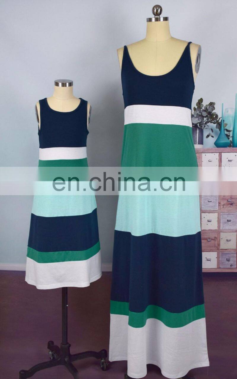 2019 New Style Mom And Girl Stripes Color Block Mother Daughter Matching Dress (this Link for KIDS)
