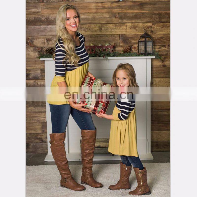 2019 New Kids Girls Dresses Family Set Women Top Long Sleeve Striped Splice (this Link for MOM)