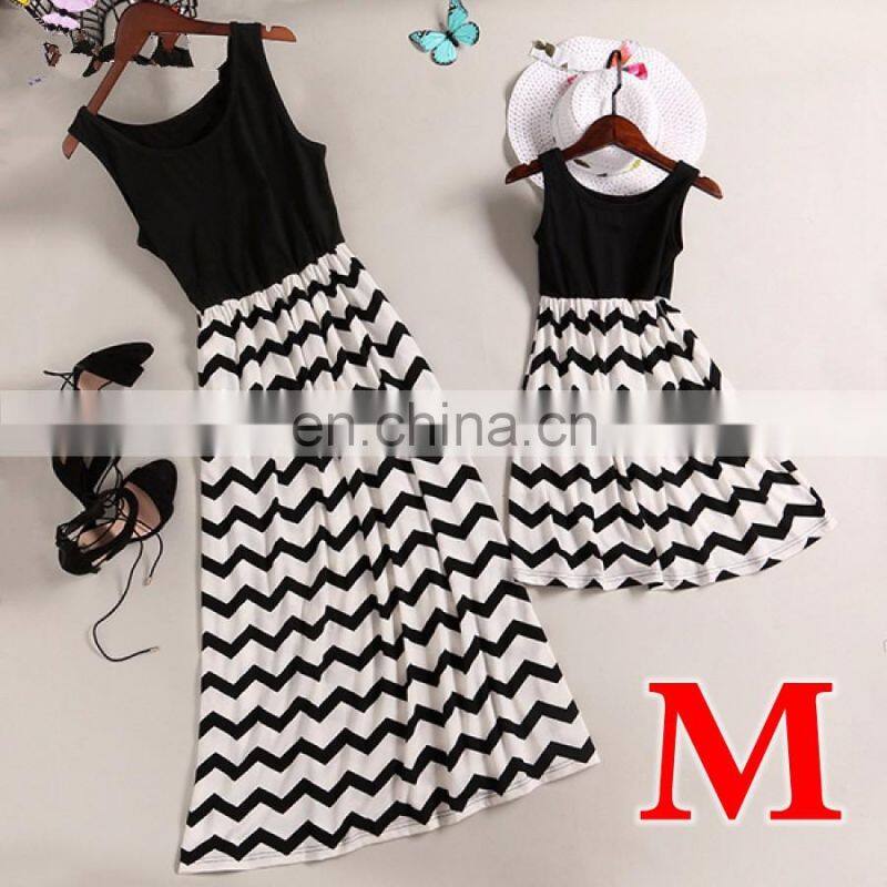 2019 Summer Mother and Daughter Casual Cotton Black White Striped Maxi Dress Mommy&Me Matching Set Outfits