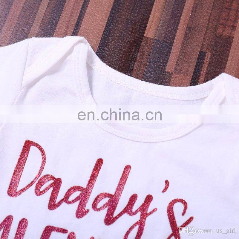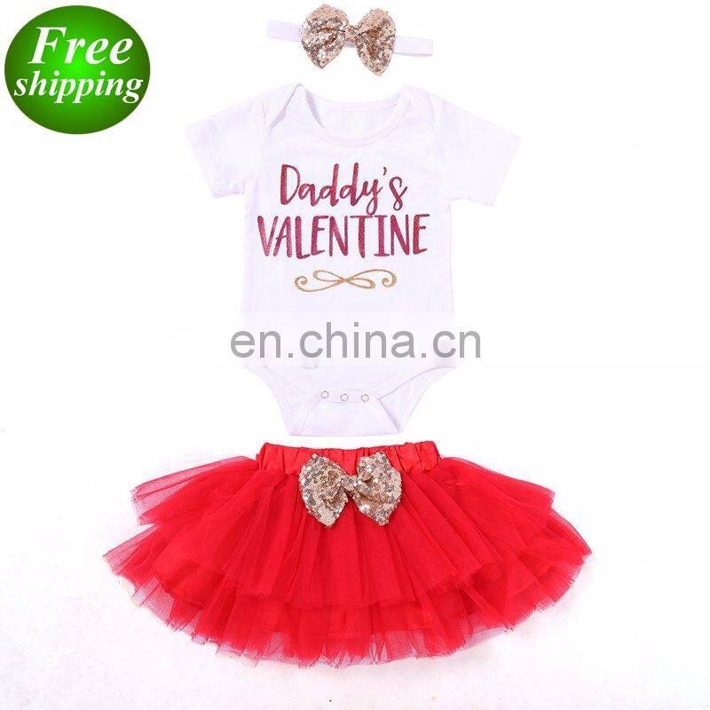 2019 Daddy's Valentine Letter Romper Tops + Tutu Skirt + Headband 3PCS Outfit Kids Clothing Set