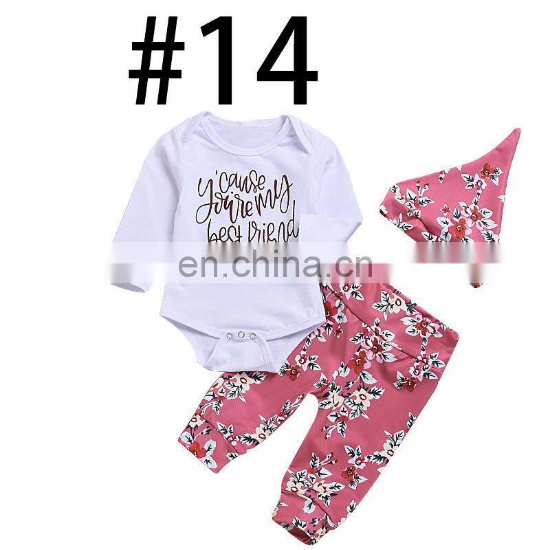 "you're my Best Friend" 2019 Boys White Rompers Outfits & Kids Pink Flower Full Print Pants & Baby Hat 3pc Set