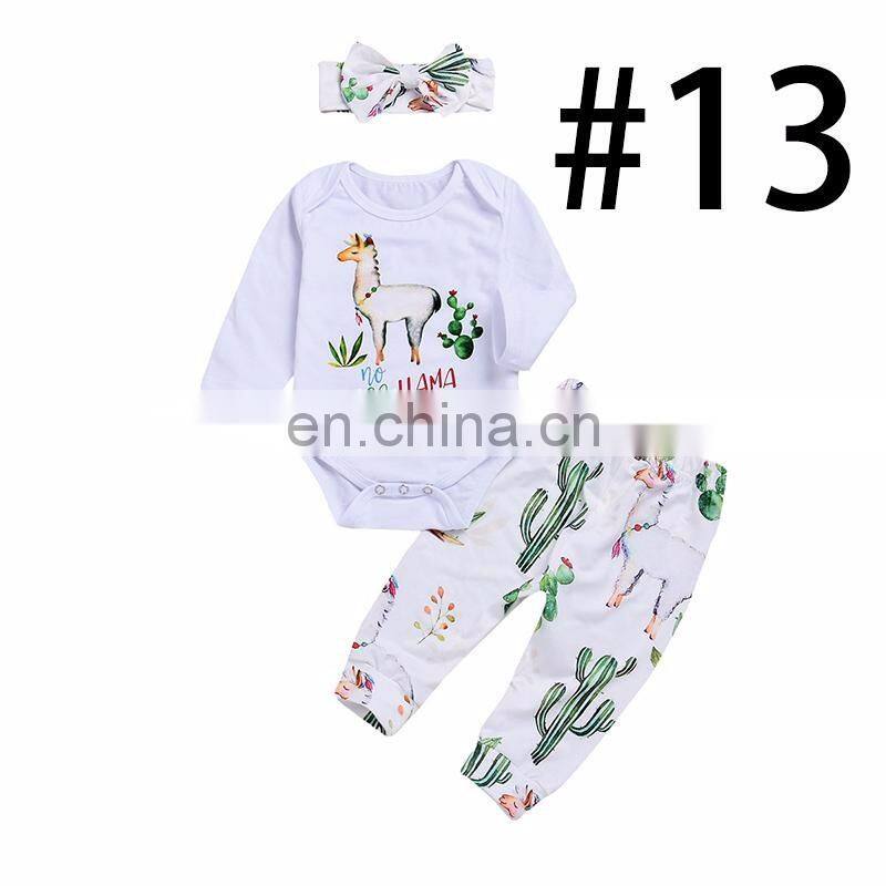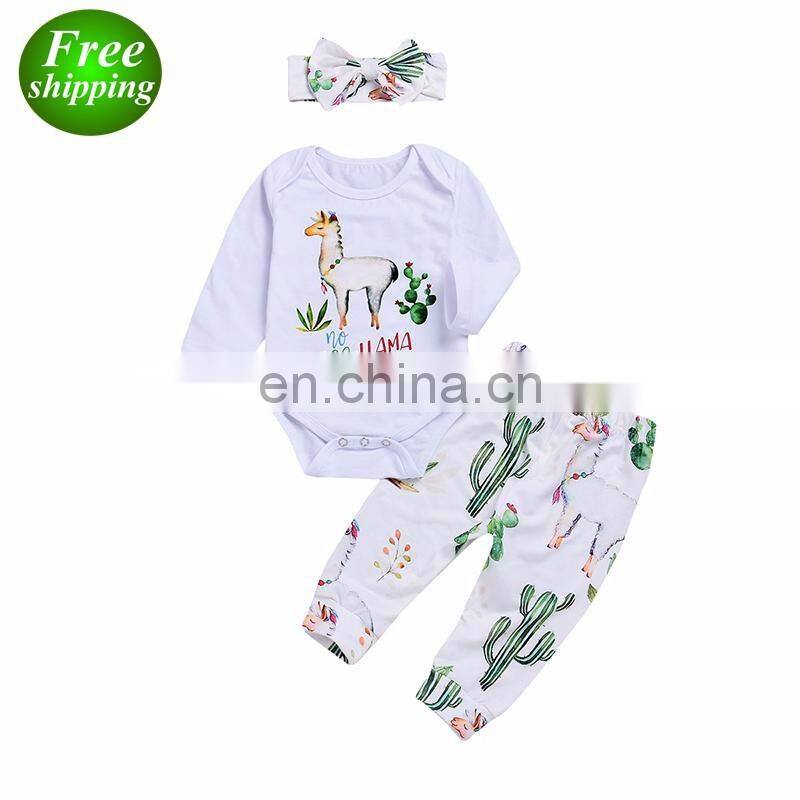 2019 Cactus Alpaca Boys White Rompers Outfits & Kids Cactus Full Print Pants & Baby Headband 3pc Set